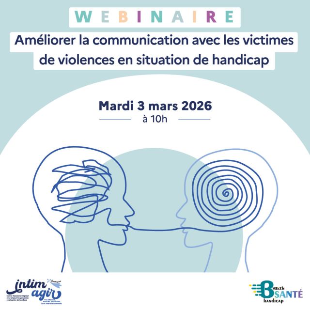 Breizh Santé Handicap coorganise avec Intimagir Bretagne le webinaire « Améliorer la communication avec les victimes de violences en situation de handicap » le mardi 3 mars 2026 à 10h.