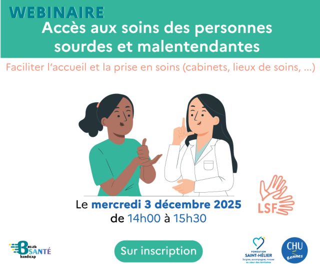 Le webinaire « Accès aux soins des personnes sourdes et malentendantes » prévu initialement le mercredi 10 septembre est reporté au mercredi 3 décembre.