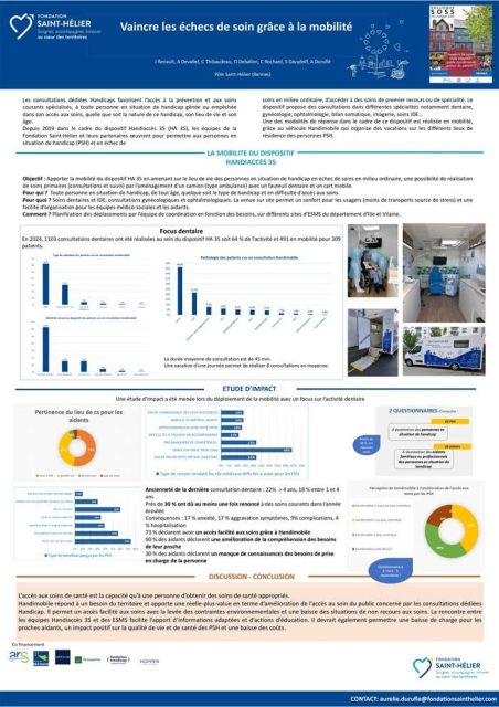 Handimobile permet un accès facilité aux soins avec la levée des contraintes environnementales et une baisse des situations de non recours aux soins. La rencontre de l’équipe HA 35 au sein des ESMS facilite l’apport d’informations et d’éducations adaptées avec un impact positif sur la qualité de vie et de santé des PSH.