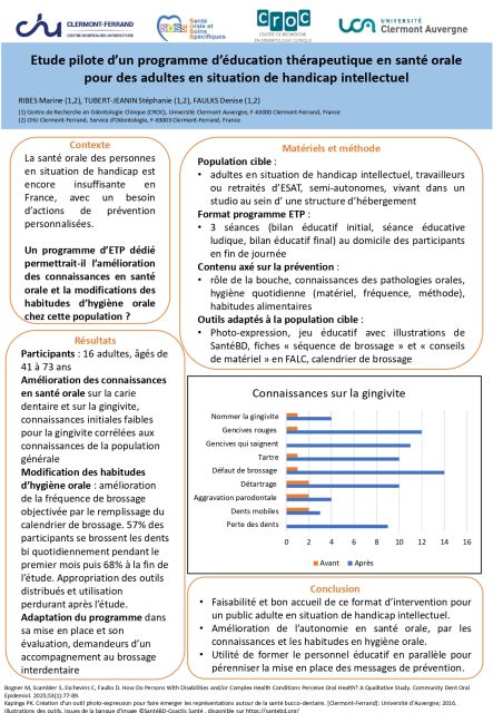 Etude pilote d’un programme d’éducation thérapeutique en santé orale pour des adultes en situation de handicap intellectuel