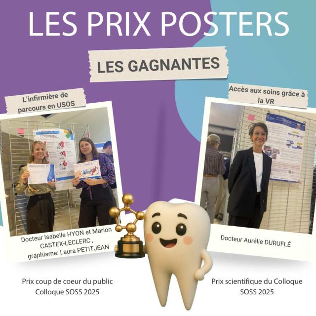 Le prix coup de cœur du public a récompensé un travail du CHU de Nantes porté par le Dr Isabelle Hyon, Marion Castex-Leclerc et Laura Petitjean, autour du rôle de l’infirmière de parcours en USOS, essentiel pour adapter les soins bucco-dentaires aux personnes en situation de polyhandicap. La qualité du graphisme, pensée pour rendre le contenu clair et accessible, a également fortement contribué à son succès.