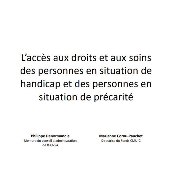 La Ministre des solidarités et de la santé et la Secrétaire d’État auprès du Premier ministre chargée des personnes handicapées ont confié, à Philippe Denormandie et Marianne Cornu-Pauchet, la mission, d’établir des propositions susceptibles d’améliorer la situation en matière d’accès aux droits de santé, d’accès aux soins et aux actions de prévention des personnes en situation de handicap et des personnes en situation de précarité.